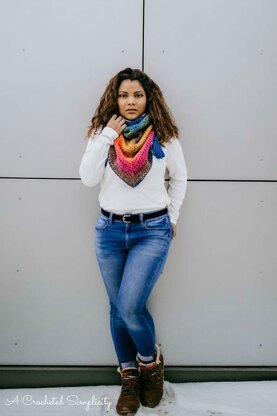 The Chimera Triangular Scarf (shawl) was designed for the 4th Annual Scarf of the Month Club. Made using only one cake of Lion Brand Mandala, it's a great project to sit and crochet while binge watching your favorite show.