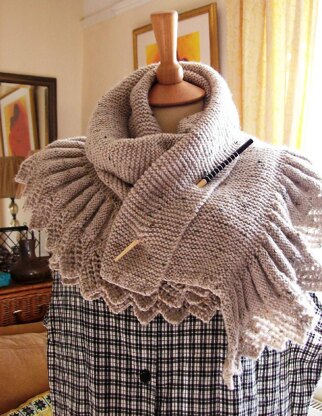 The Chine Cosy is a beautifully versatile addition to your wardrobe. Can be worn over the shoulders as a shawlette, pinned with a shawl pin in a variety of ways, wrapped around the neck once, twice or more as a thick neck warmer or left to dangle long and fashionably as a funky scarf....