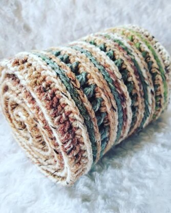 The pattern calls for approximately 565 yards of worsted weight acrylic yarn, although you can use the fiber of your choice. That's about 375 yards of one color and about 190 yards of the second color. (Featured is Premier Muir Woods in colorways Chipmunk and Laurel.) You'll also need a US-J 10/6.00mm crochet hook, a tapestry needle, and scissors.