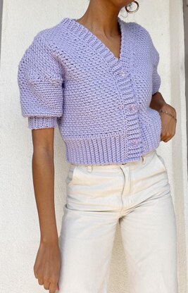 This cute cardigan is perfect for spring/summer with it's short puffy sleeves, V neck and draped design. The cardigan can also be made with long sleeves! The sleeves are designed to prevent too much material gathered under the armpit.