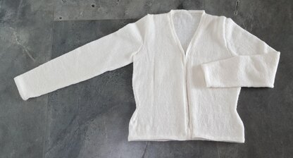 This ladies, plus sizes, V neck 4ply Jacket with waist shaping is worked in one piece to the armholes. The hems can be knitted into position or slip stitched in place later. The pattern includes the option of short or long, set-in sleeves.