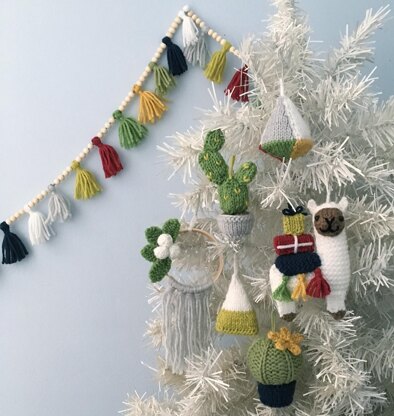 Merry Christmas!!! This Pattern will instruct you on how to Knit my 2017 Christmas Ornament Pattern set. Pattern includes instructions to make 2 Cactus Ornaments, Llama, 2 Geometric Ornaments, Embroidery Hoop Hanging Ornament and the Tassel and Wood Bead Garland. I have included lots of photos to help you along the way.