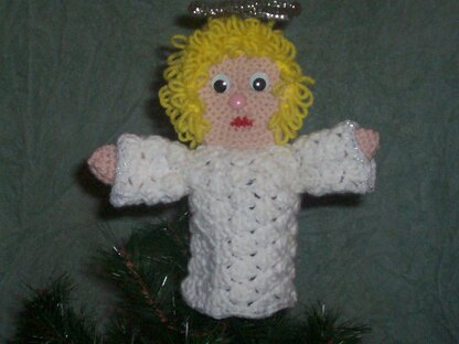 I think that this is kind of a cute and unique idea which I had. The kids can play with the puppet until it is time to crown the tree with the topper. Of course, an angel definitely belongs on top of the tree. The puppet is meticulously designed, with arms extending completely inside the sleeves and wings made separately. It is made with worsted weight yarn and a small hook for extra stiffness. I also have Mrs. Claus, Frosty and Santa tree top puppet designs.