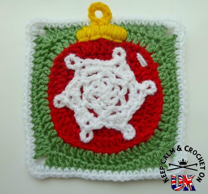 Christmas baubles don't just have to go on your tree! This pattern is not only a great square to add to a Christmas themed multi square Afghan or for a cushion. but it could be used for scarves, bags or pot-holders too!