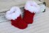 soft , cute little bootie, made from very soft yarn, with fur accent, will make a perfect gift for a CHRISTMAS BABY, are knitted in one piece, sewed in the back only.