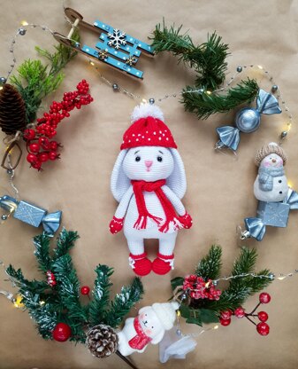 Crochet pattern for a little Christmas Bunny is a pdf instant download. This is a great idea for home decor and holiday gifts.