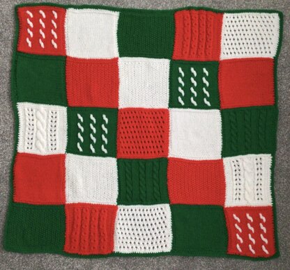 The colours of Christmas are always exciting to work with. This easy to make square throw is great for a stroller to keep baby warm or can be used as a throw and looks great on the back of the sofa, The coloured cable was inspired by candy canes, and the lace squares was a little like snow, Just fun to imagine all sorts of things. Very easy to do, you can even change squares if you are not confident with cables. Double the squares and yarn to make a wonderful bed throw.