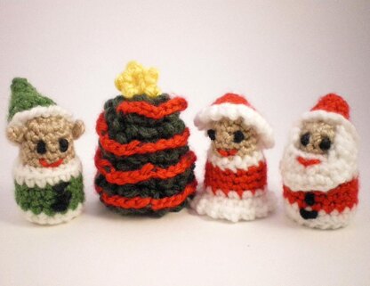 These Christmas finger puppets are great for enacting fanciful stories about Christmas. Think how much fun it would be to find these finger puppets under (or hanging on) the tree on Christmas! This pattern uses small amounts of yarn, so it's a great way to use up those little bits of yarn that you have left over from other projects.