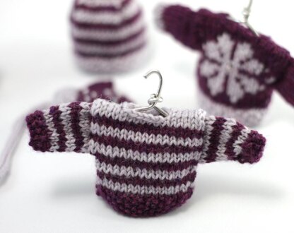 This super cute mini sweater is deceptively easy to make. The body is worked flat in one piece in a simple striped pattern. Also included in the pattern is a tutorial for the charming coat hanger.