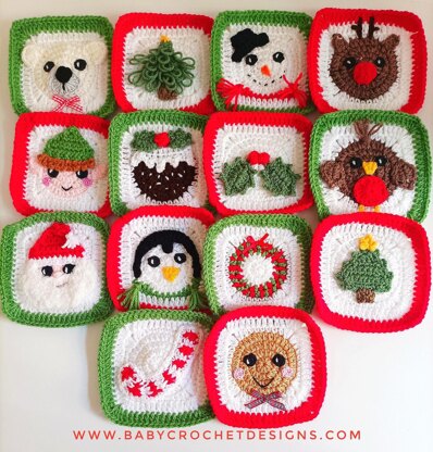 These fun Christmas granny squares are all started the same by making a circle with either the animal colour or main colour, then turning into a square using a background colour.