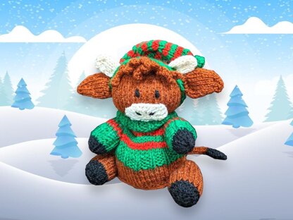This stunning Christmas Highland Cow knitting pattern can be used as a chocolate orange cover or stuffed using the base pattern to make a lovely 15 cms soft toy.