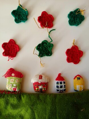 Hello everyone, I present to you the Christmas Cottages There are 5 cottages in different bright colors for this Christmas I love making cottages, to make hanging ornaments, also little towns, even for pins. They have quite Christmas colors with the windows with lights on. If you like cottages, don't hesitate to make them, they are easy to make since they are made flat, then sewn and the details are given with embroidery. The approximate size is 6.5 cm to 7 cm You can make them with any thread, leftover thread from your other projects The pattern is in English and Spanish.