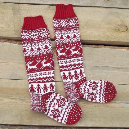 This is a Christmas stocking knitting pattern. Reindeers, Christmas trees, snowflakes are pictured here to make your Christmas fun and joyful!