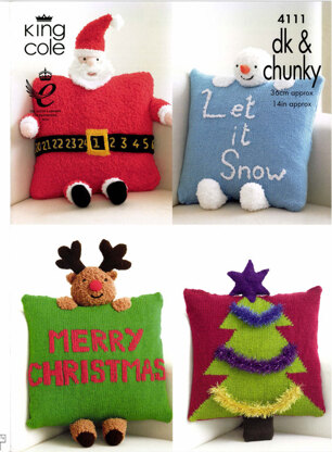 Christmas Novelty Cushions in King Cole Cuddles Chunky and Big Value DK - 4111 - Leaflet is a Intermediate Knitting pattern by King Cole, available as a Leaflet and includes instructions in English. Super fun to make, this pattern could be your next masterpiece!