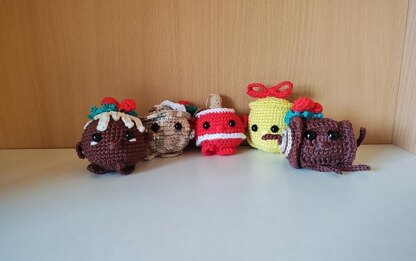 Create a festive touch for your home with this Christmas Amigurumi Crochet Pattern Bundle – PDF for Holiday Gifts This crochet set includes 5 adorable holiday decorations: Pudding, Gingy, Baubly, Sunny Gift, and Choco Log. Each ornament is designed with charming details like white icing, holly leaves, red berries, and soft cotton yarn to capture the spirit of Christmas.