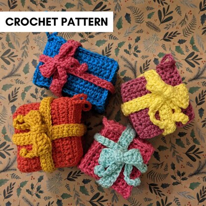 A quick crochet pattern for making a pretty Christmas present ornament decorated with a bow and ribbon. Perfect for decorating your Christmas tree, putting up as part of a garland or to add to a wreath. Pattern variations are provided so you can make a square or rectangular shaped ornament with or without a 'box lid' effect finish. The Christmas present ornament is made up using a few beginner-friendly stitches: the slip stitch, the single crochet, the half double and the double crochet stitch. The 8 page pattern is written in US terminology and includes: - Instructions for making the constituent pieces - Options for customisation - Instructions for assembling the ornament - Video tutorials to accompany the pattern - Materials needed and yarn combinations used You will need: - A size 3.0 crochet hook - 50 gr Scheepjes Catona yarn in colours of your choosing or similar yarn - A darning needle - Some poly-fil stuffing or yarn scraps and cardboard - A pair of scissors