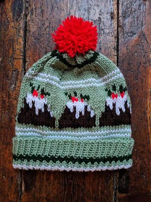 This fun + festive hat pattern is for a knit Christmas pudding beanie. It features fair-isle style repeating puddings! Unisex, because puddings are for everyone!
