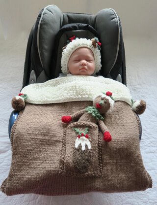 Knitting pattern contains instructions for the Christmas Pudding Car Seat Blanket. Includes blanket, hat and Christmas Pudding toy.