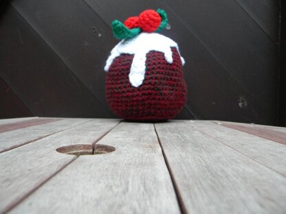 This pattern is for a large Christmas pudding roughly 6 inches in diameter. Smaller or larger puddings can be made by changing yarn weight and hook size.