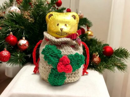 This gorgeous Christmas Sack knitting pattern is made to hold a 100g Lindt Teddy chocolate or a similar size sweet and can be used as a Table Decoration. This makes a stunning addition to your table, a fantastic fund raising item for fayres etc or great as a novelty decoration.