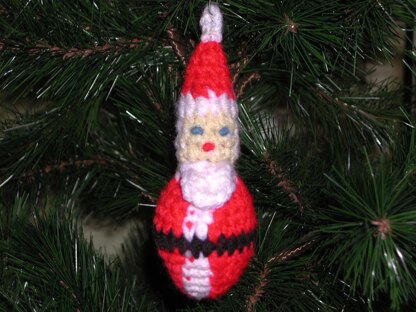 This adorable little Santa ornament will look great on your Christmas tree. It is made with scraps of worsted weight yarn and a small amount of dacron stuffing. I designed a whole series of these, because I adopted a cat who loved to climb the Christmas tree. Obviously, they are pet- and kid-proof and washable, too.