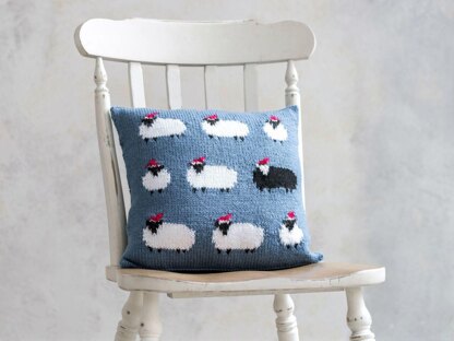 A striking and fun cushion to knit in Aran or Worsted (10 ply) yarn for your favourite chair or sofa for the festive Christmas Season. The knitting pattern gives full instructions and there are clear, large charts to follow for knitting the sheep.