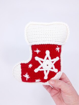 (PDF file) Crochet amigurumi pattern a Rag Doll a toy Christmas Stocking. The pattern is available in English.