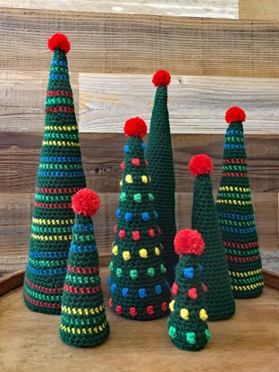 Add a bit of woodland Christmas whimsy to your holiday decor. These trees are a quick and fun project. The trees can be made with worsted weight yarn, or for very large trees use super bulky yarn.