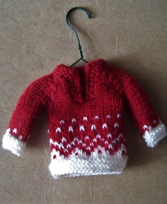 This pattern is for a 3-inch tall Henley raglan sweater to be used as a Christmas tree ornament. It is worked top down flat until the Henley opening is complete, then it is worked in the round with circular needles using the magic loop technique. The only seaming is for the sleeves. This little sweater is a good way to use up a little bit of leftover sock yarn. Any fingering yarn will work, but my preferred yarn is a merino/nylon blend that works up tidy and smooth (Cascade or Knitpicks). The sweater hangs on the tree on its own little clothes hanger - directions included. If done up in blue, I think this could be called "Snow on the mountains."