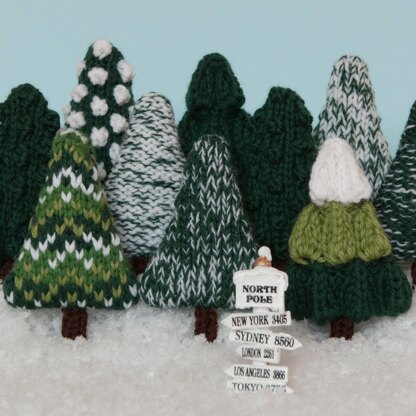 The trees are knit flat and are approximately 10cm (4 inches) tall.