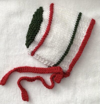 This Christmas bonnet has a lovely twist pattern on the brim. Worked flat on two needles, knitted in one piece there is only