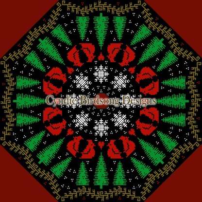 This beautiful Christmas Woods Tree Skirt uses the overly mosaic crochet method and features magical elements of nature, including scrolling branches, pine trees, cute cardinals & snowflakes! This pattern will create a round skirt using 8 repeated panels, all done together (no joining needed later) & includes fully written row-by-row instructions, along with a single page chart for viewing on devices and a 4-page chart to print out.