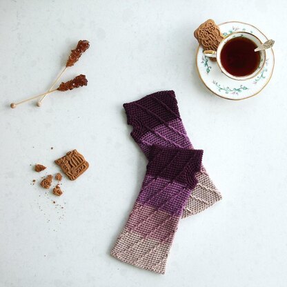 Create an beautiful set of wrist warmers with the crochet Chroma wristies! They spiral up and up, over your wrist into your palm. The front-post trebles combined with the ombre colours create opposite and eye-catching vortexes, different for the left and right hand. The pattern is written in UK terms, and is suitable for advanced beginners who can work with front post stitches. The pattern is also available for free on Haakmaarraak. The paid version is advertisement free, styled and printfriendly.