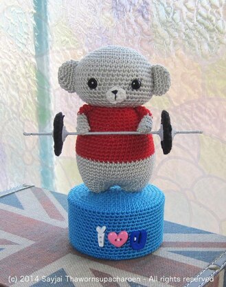 Crochet pattern to create a weight-lifting bear. This is a great gift to remind a friend or family to stay fit and exercise.