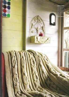This is a pattern for a Chunky Cable Blanket, originally published in Knitting magazine. It is made in sections with cable panels. The yarn has now been discontinued. Any yarn knitting to the same tension can be used, or a different tension for a different sized blanket. Photos Laurel Guilfoyle for Knitting magazine.
