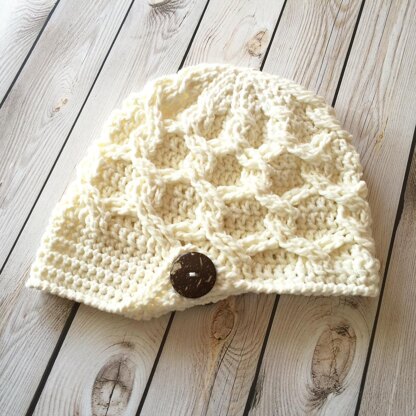 This is a PDF crochet pattern for a chunky slouchy newsboy with a unique stitch pattern.