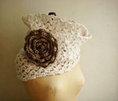 Easy to make crochet loop scarf with flower pin, made with 300g Aran/ heavy worsted weight yarn and hook 7mm. Difficulty: Easy. The pattern is written in American crochet terms.