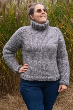 /PATTERN DETAILS • Sizes XS to 5XL • Beginner friendly • Cozy sweater with turtleneck • Lightly cropped with a normal fit • Top-down seamless raglan sweater • Quick and warm: super bulky yarn