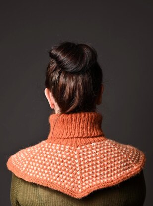 Chunky Ridder is the adult edition of Knights Cowl, but with softer and thicker yarn. The cowl is knitted with garter slip stitches, that gives an exciting effect. The cowl is knitted top down, where the turtleneck is knitted first on circular needle 4,5 mm. Then you change to circular needle 6 mm when you start the rest of the cowl, and this is knitted on the round. The instructions shows recommended length, but feel free to knit it longer if you want. If you want to use more than two colors, change colors where the instructions state color 2.
