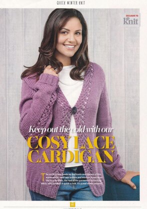 This is a pattern for a Chunky Lace Edge Cardigan, originally published in Lets Knit. I m not sure of the issue but it will be in one of a few following June 2016. Photos Lets Knit.