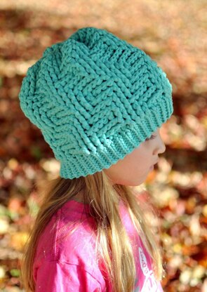 This is a chunky textured slouch in five sizes. Coordinates perfectly with my Thunderstruck Beanie and Thunderstruck Slouch with Braids.