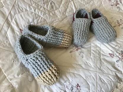 Perfect slippers for the whole family! Warm comfortable and sturdy. Crocheted using simple stitches throughout. Size can be adjusted by adding more rounds for length.