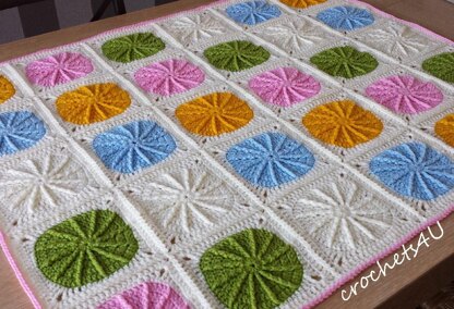 With this pattern you can crochet this wonderful baby blanket. First crochet the squares, join them as you go in the last row. No sewing. The blanket in the example is crocheted with acrylic yarn and hook size 4,5 mm and measures 94 cm x 77cm. Of course you can crochet this with any yarn of your choice and matching hook size. Crochet this blanket as large as you want : e.g. add some squares. The choice of colours is also completely up to you.