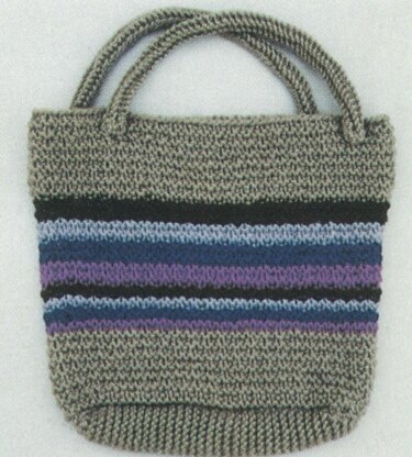 A “unique” stitch pattern, that is so easy, yet makes this purse look as if it were woven fabric! Use rug yarn or a bulky yarn. We find rug yarn has more stability to keep “ heavy” things in, and keeps it from sagging. We used up scraps to make a center stripe pattern, but this could easily be made all in one color. Size is about 14” by 11 ½ inches. Use a 16 inch circular needles, US size 10.5, and the knitting will go fast!