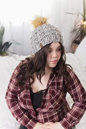 A chunky, textured, cozy hat; perfect for a relaxing, knitting experience.