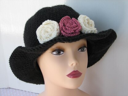 Made from bulky yarn, this hat is the perfect accessory for winter. Adorned with rosebuds, this wide brim hat is sure to be a favorite.