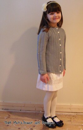 This sweater is worked back and forth, bottom up, in one piece until the armholes. Then it is divided into back and fronts. After the shoulders are seamed, stitches are picked up around the armholes and short rows are worked to shape the sleeve cap. The sleeve is continued in the round. Stitches are picked up along the edges for the buttonband, then around the neck for the collar.
