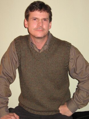 Use any aran weight yarn. I just like Galway and have used it twice. This is a great choice to make as a gift for Dad. It's classic style is never out of fashion. The borders are in an easy mock cable rib, so it looks a bit better than completely plain. The armholes are generous to accommodate full sleeves at: 9 (9 1/2, 10, 10 1/2, 11, 11 1/2) ins. Length to back of neck is: 25 (26, 27, 28, 29, 30) ins. Choose a size approx 2-4 ins bigger than chest measurement.