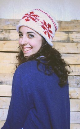 Try your hand at Fair Isle-style colorwork knitting with this slouchy hat! The classic snowflake motif works up easily and looks great with any outfit.