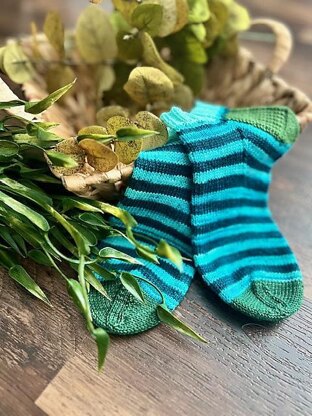 Classic Striped Socks are just that… the sock that can be knit with your favorite mini sock set of 5 colors, or 5 colors chosen from your leftover sock bin, and just plain knit down the foot. It’s pure joy. It’s truly just a fancy vanilla sock. Get creative with your color selections or use a mini set. These are fun! Simple. Be creative.